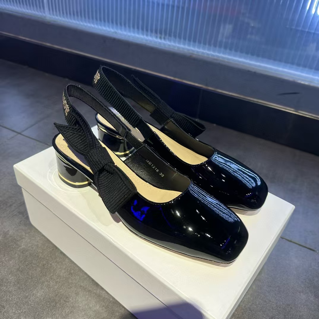 DI0R 高品質スクエアトゥパテントレザーローヒール【50%割引+送料無料】