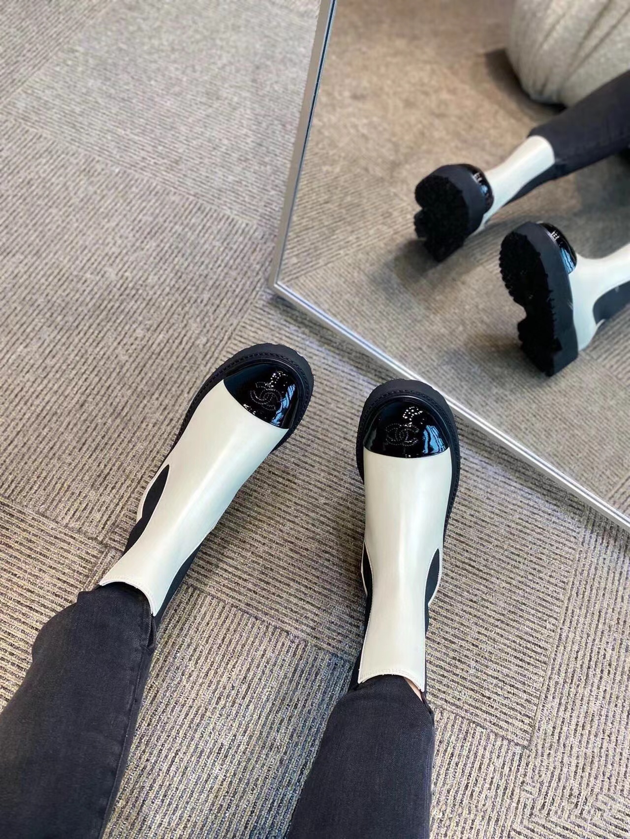 CHANE1 高品質ダブルCロゴ白黒マーティンブーツ【50%割引+送料無料】