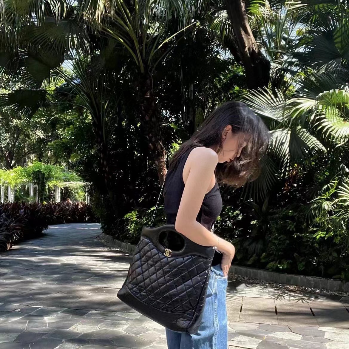 CHANE1 チェーンデニムビーチバッグ【50%割引+送料無料】