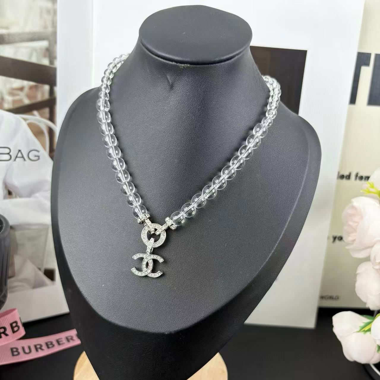 CHANE1 サークル フルダイヤモンド ダブルC ネックレス【 50%割引+送料無料】