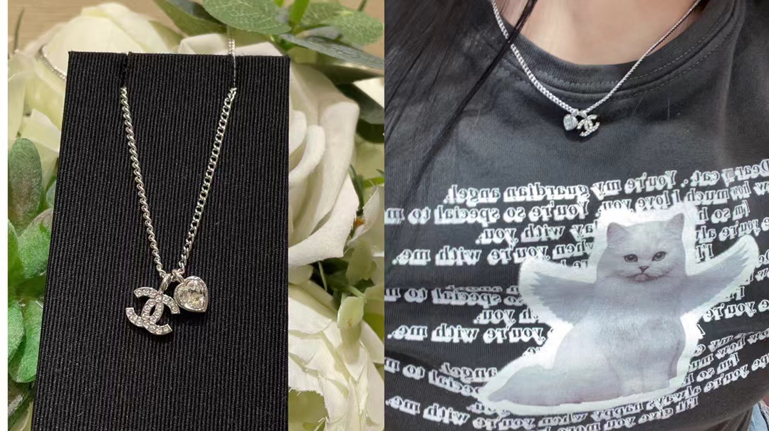 CHANE1 ダブルC ハート ダイヤモンド ネックレス【50%割引+送料無料】