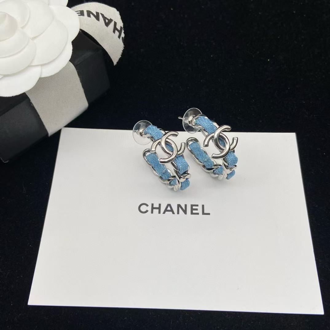 CHANE1 ダブルC ブルーイヤリング【 50%割引+送料無料】