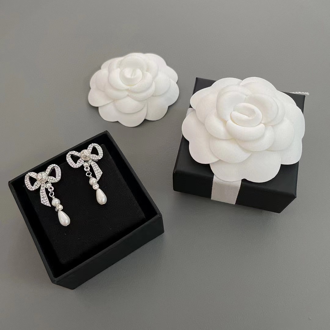 CHANE1 ボウ ダブル C ダイヤモンド スタッド ピアス【50%割引+送料無料】