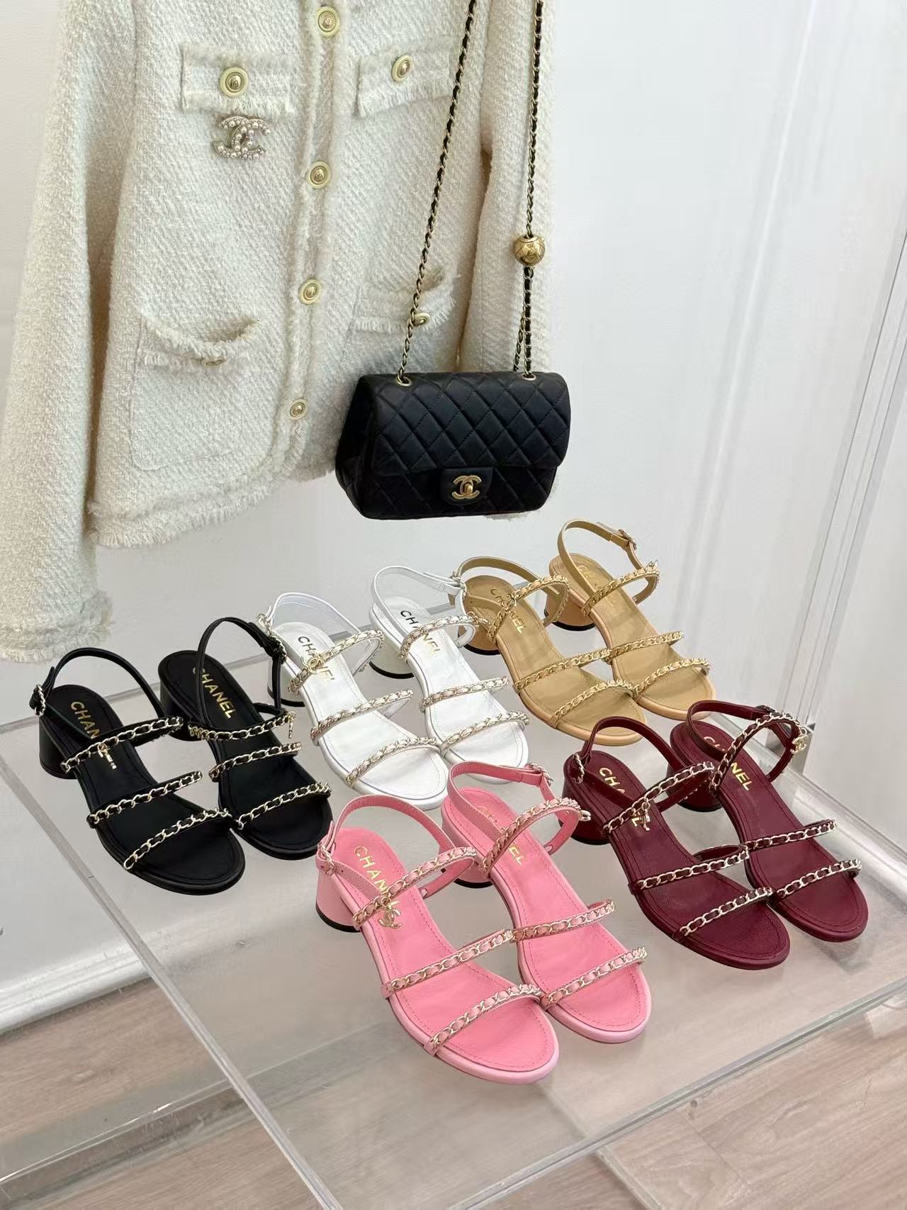 CHANE1 高品質ダブルCチェーン厚ヒールサンダル【50%割引+送料無料】