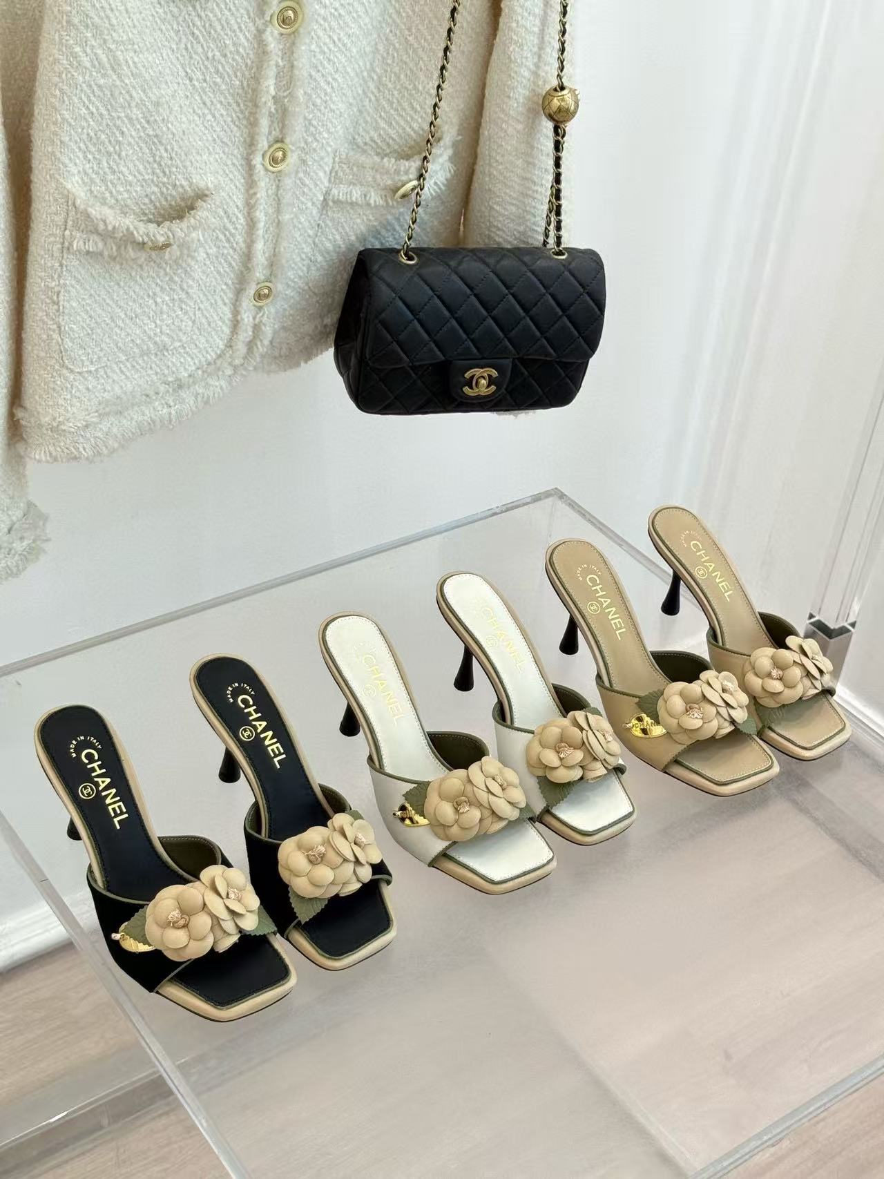CHANE1 高品質カメリアハイヒールスリッパ【50%割引+送料無料】