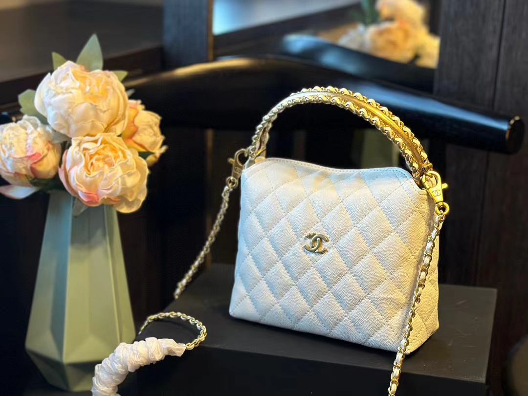 CHANE1 パールカラーダイヤモンドチェーンハンドバッグ【50%割引+送料無料】