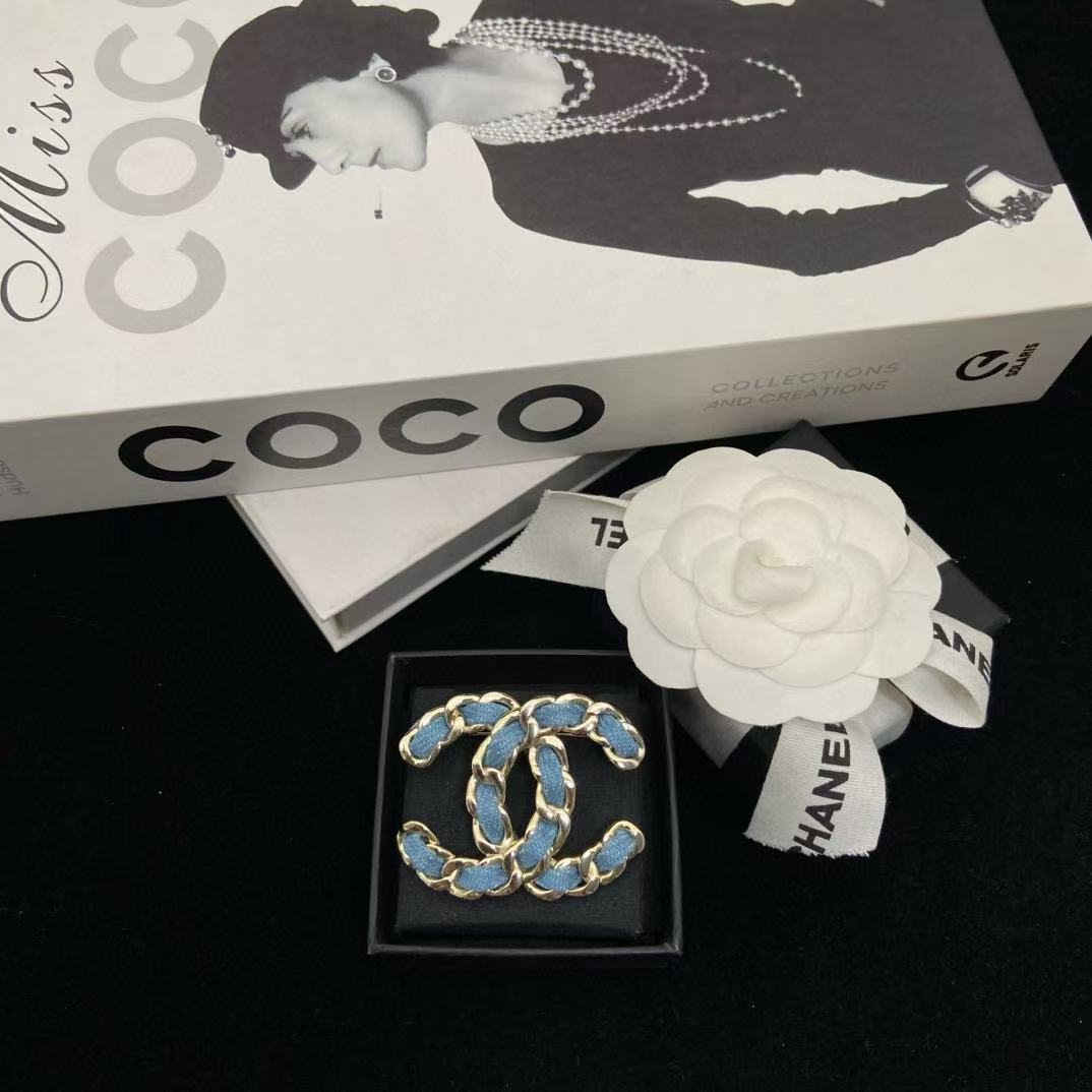 CHANE1 ダブルC ブルーブローチ【50%割引+送料無料】