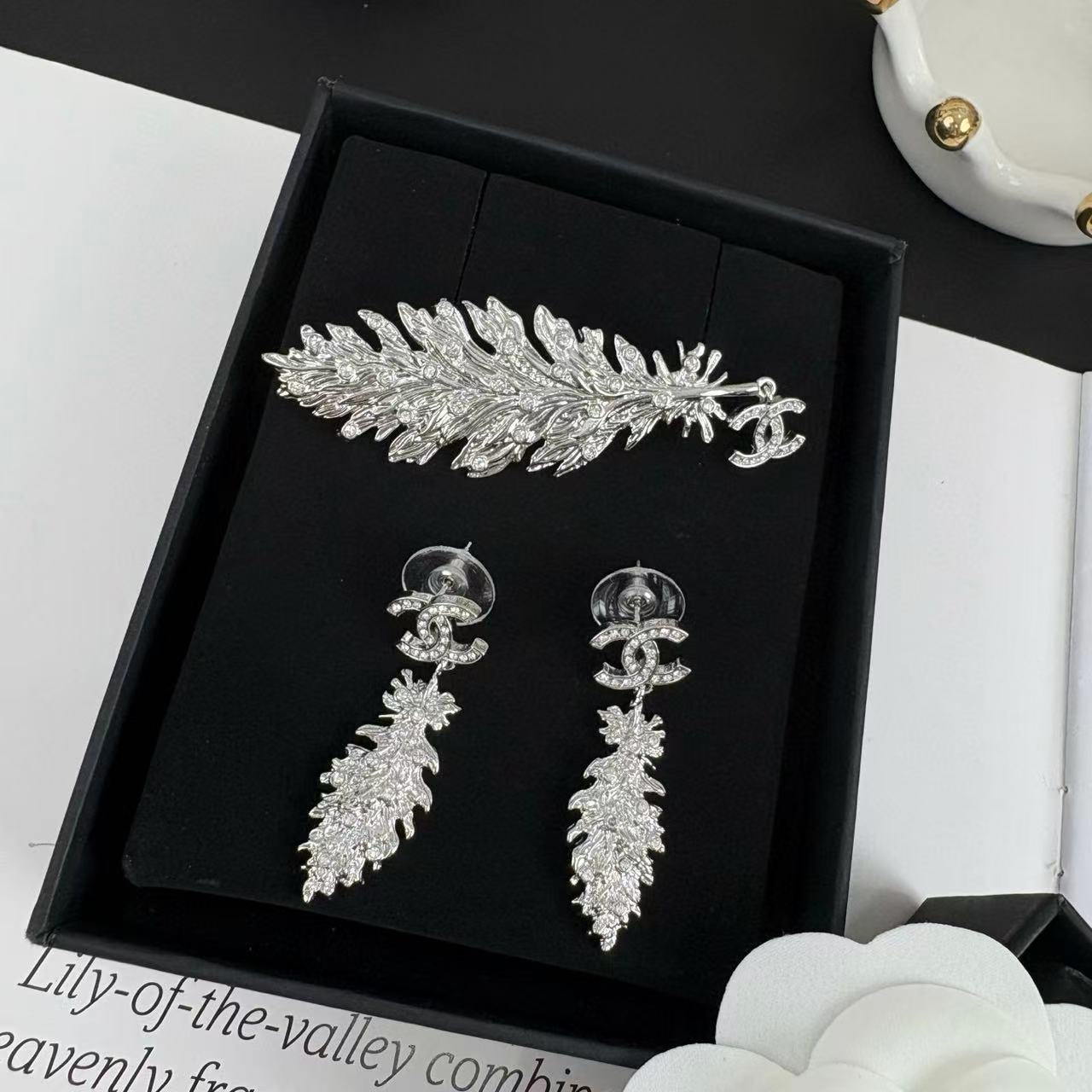 CHANE1 リーフブローチ+イヤリング 2点セット【 50%割引+送料無料】