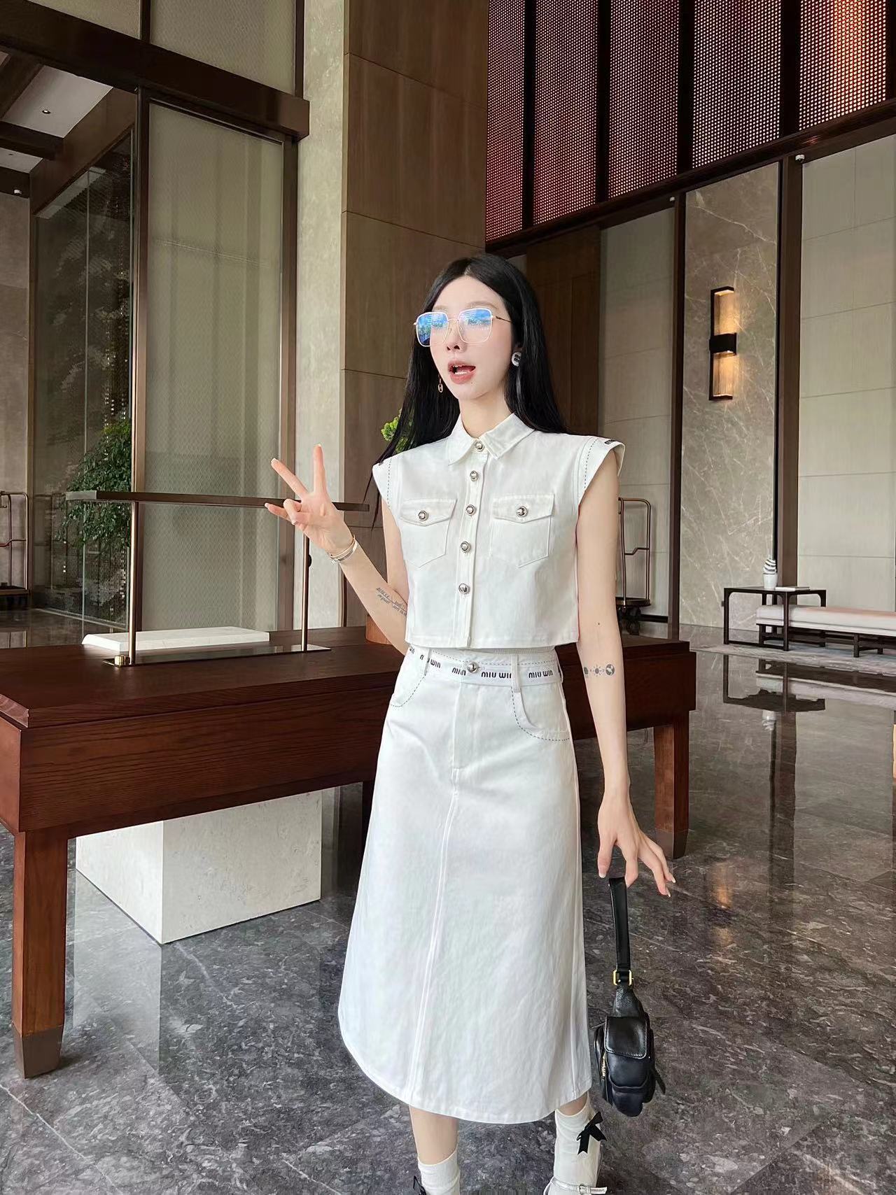 M1UM1U 高級デニムベスト+スカート2点セット【 50%割引+送料無料】