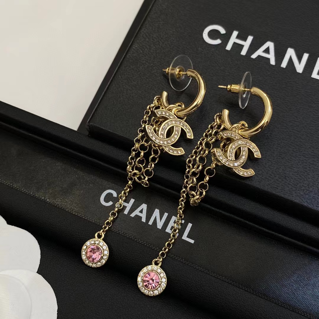 CHANE1 ダブル C ダイヤモンド タッセル スタッド ピアス【50%割引+送料無料】