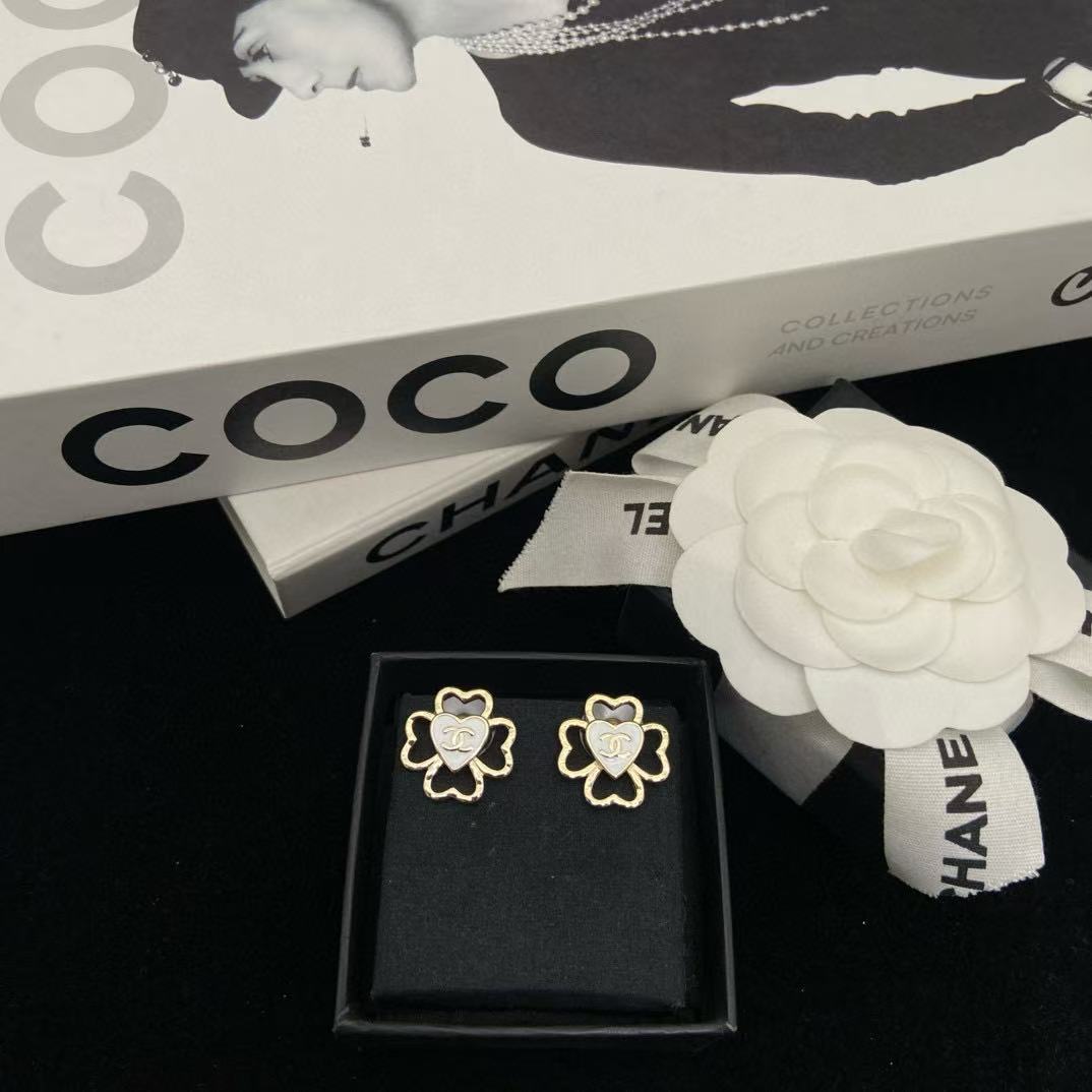 CHANE1 ダブルC 四つ葉のクローバー イヤリング【50%割引+送料無料】