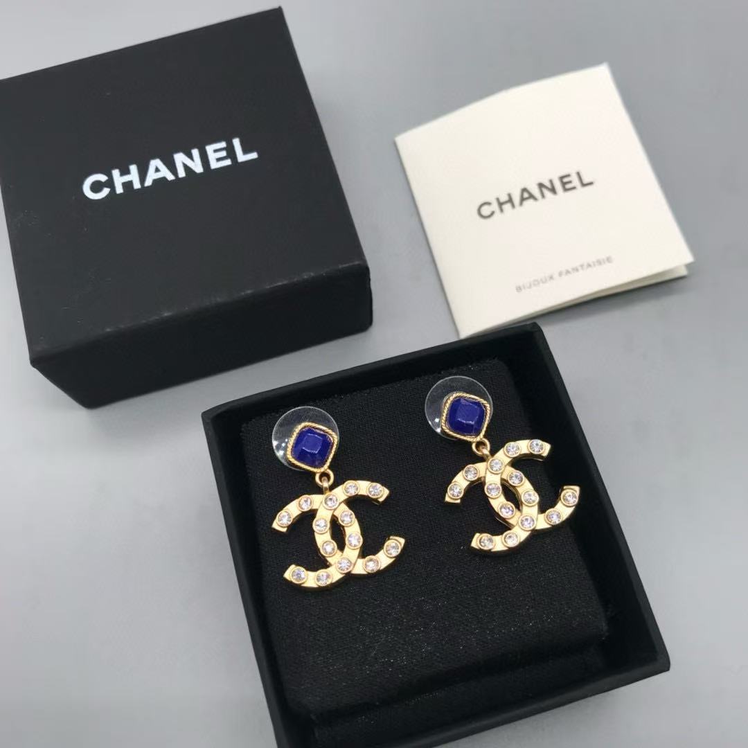 CHANE1 ブルー ジェムストーン ダブル C スタッド ピアス【 50%割引+送料無料】