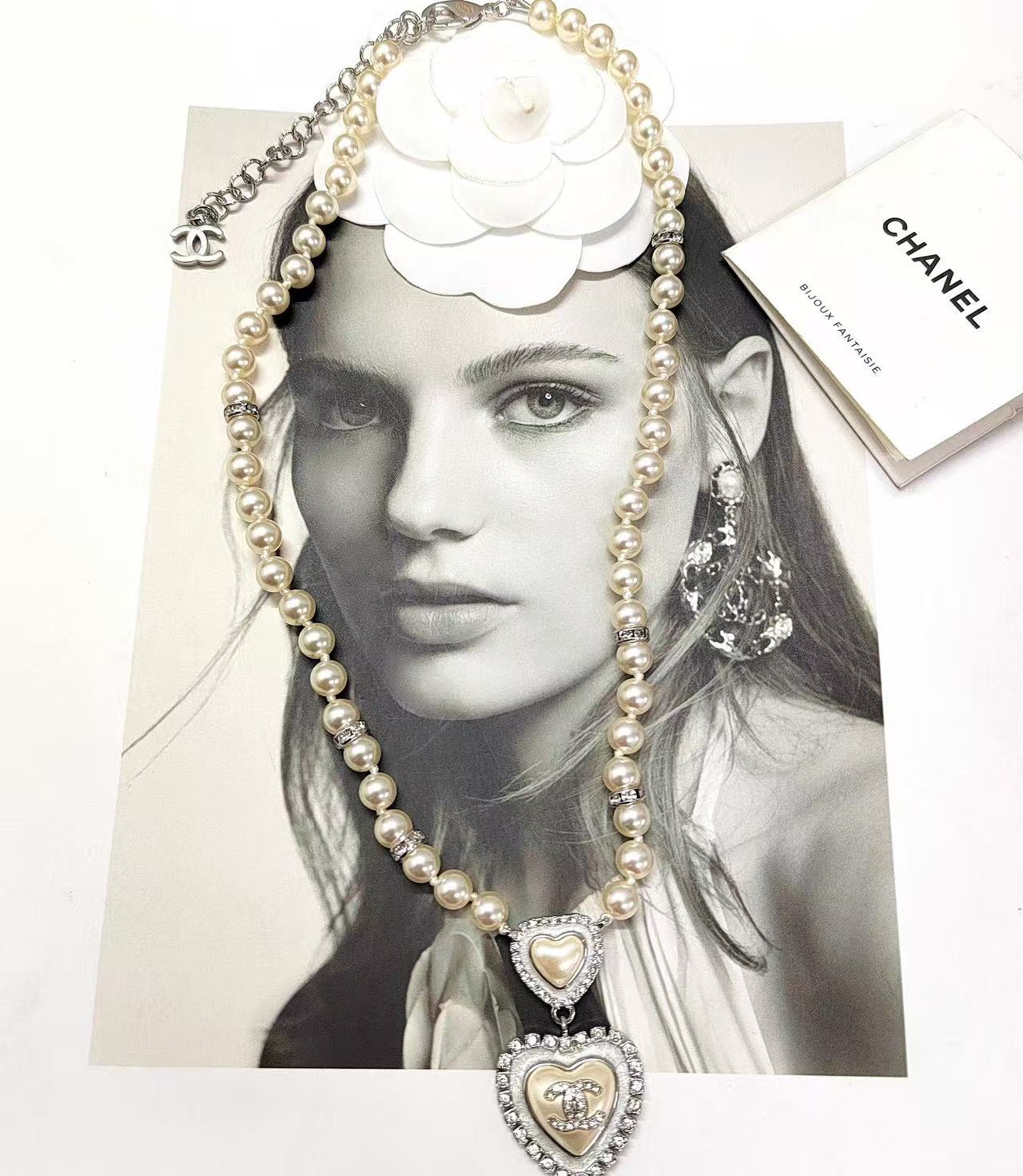 CHANE1 ダブルCハートパールネックレス【 50%割引+送料無料】