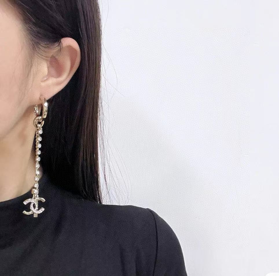 CHANE1 ダブルC フルダイヤモンドタッセルイヤーフック【50%割引+送料無料】