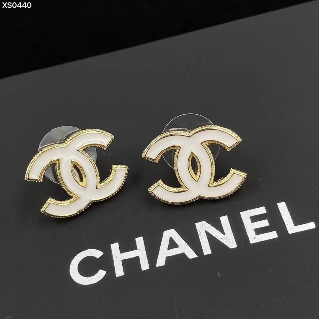 CHANE1 ホワイト ダブル C スタッド ピアス【 50%割引+送料無料】
