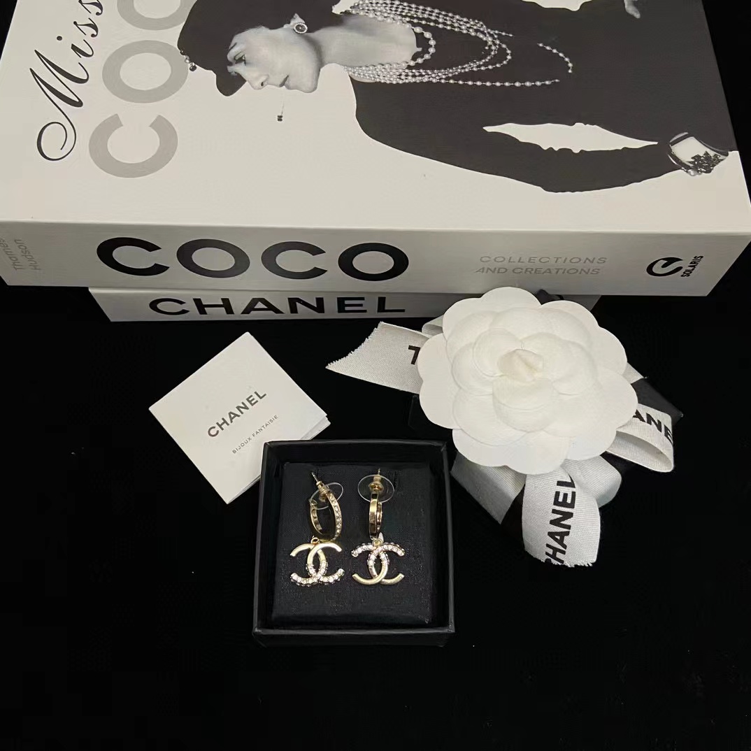 CHANE1 ダブルC ハーフダイヤモンド ピアス【50%割引+送料無料】