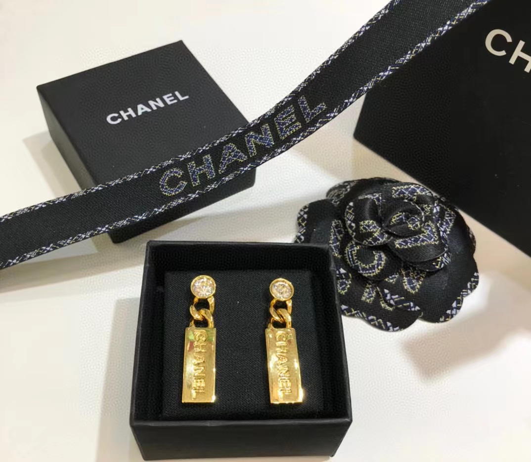 CHANE1 ダイヤモンド チェーン レター スタッド ピアス【50%割引+送料無料】