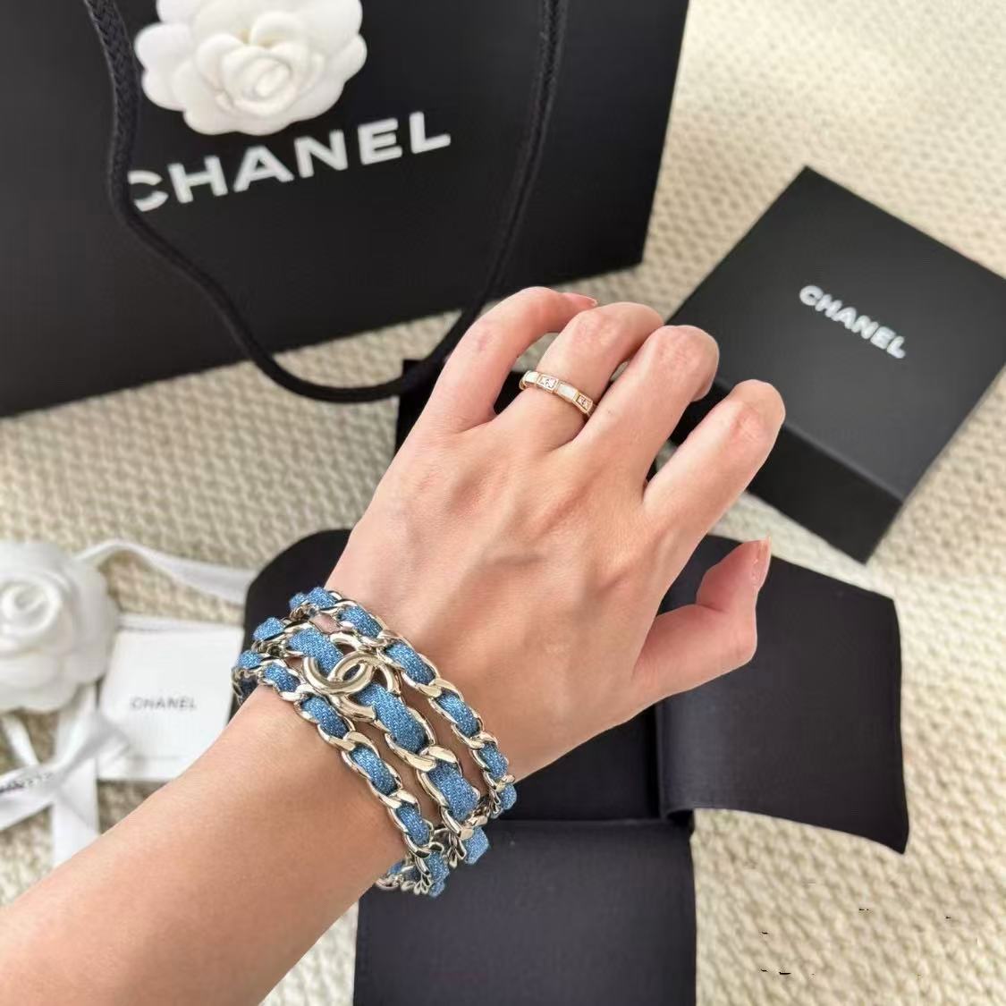 CHANE1 3ピース ダブルC デニムブレスレット【 50%割引+送料無料】