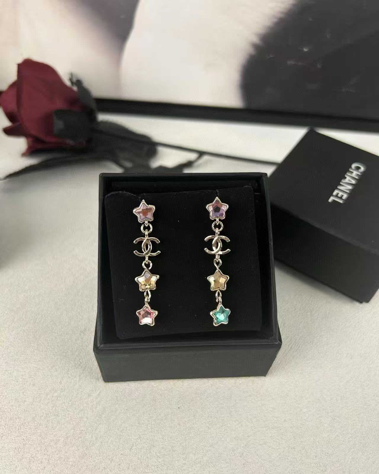 CHANE1ラインストーン チェーン イヤリング【50%割引+送料無料】