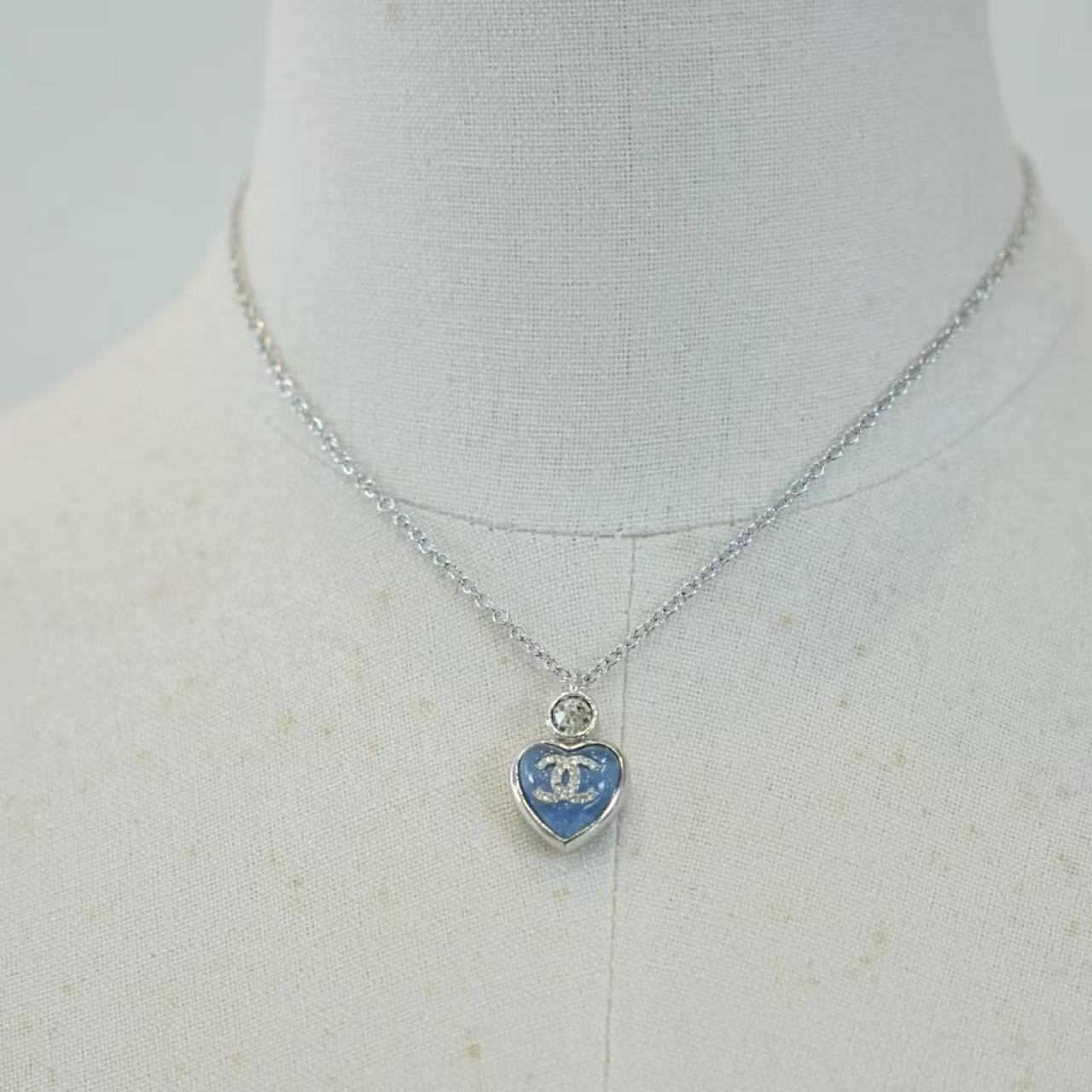 CHANE1 ダブルC ブルーハートネックレス【 50%割引+送料無料】