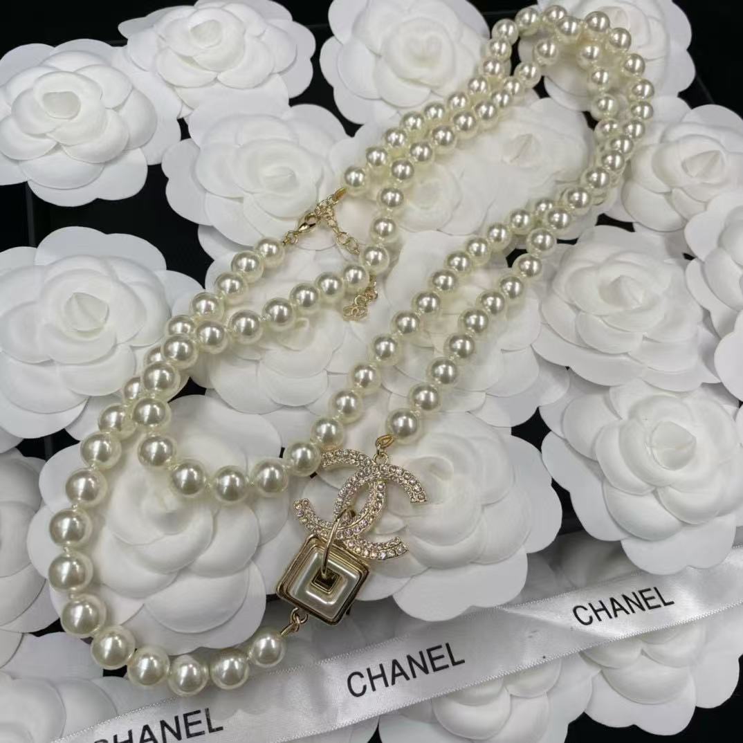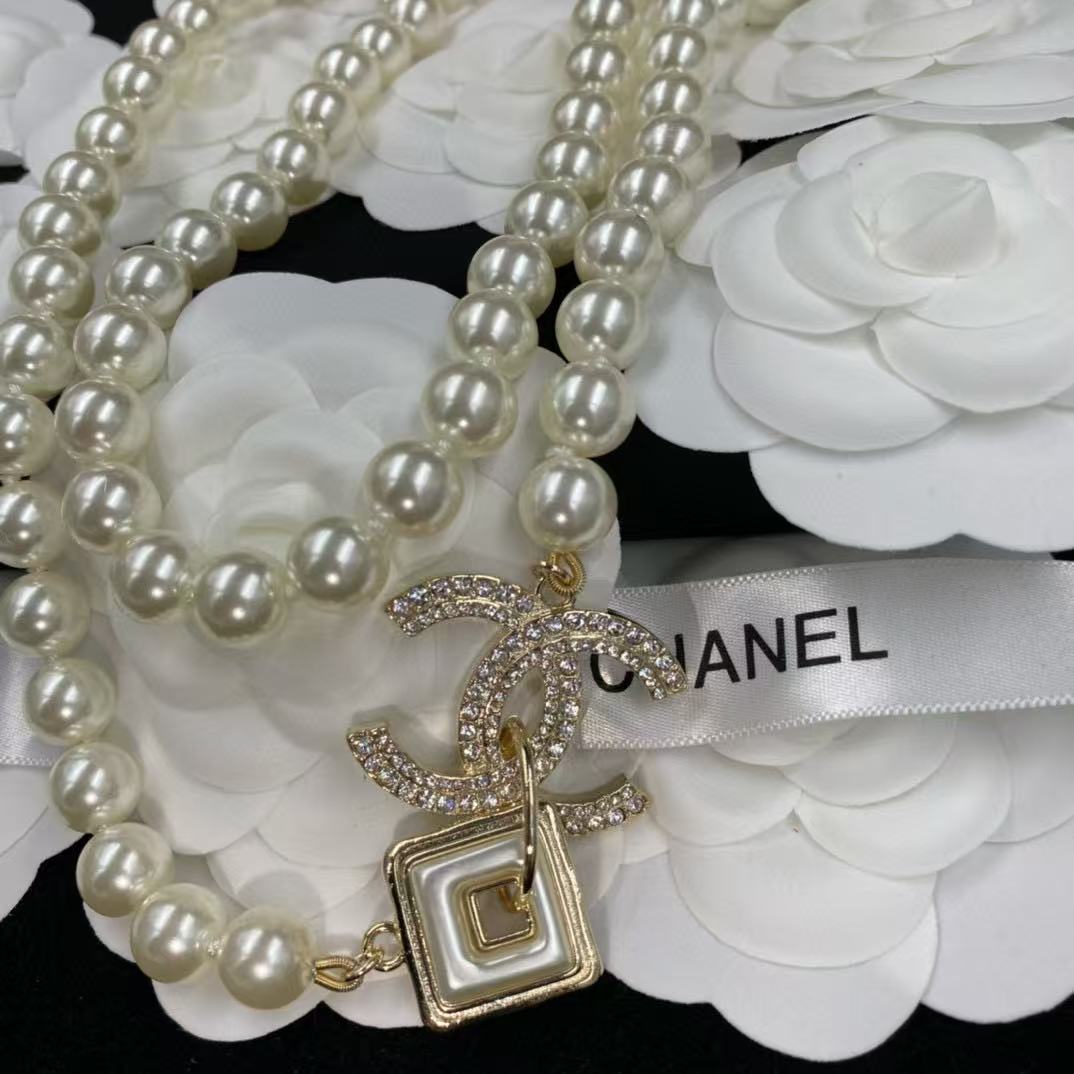 CHANE1 ダブルCパールセーターネックレス