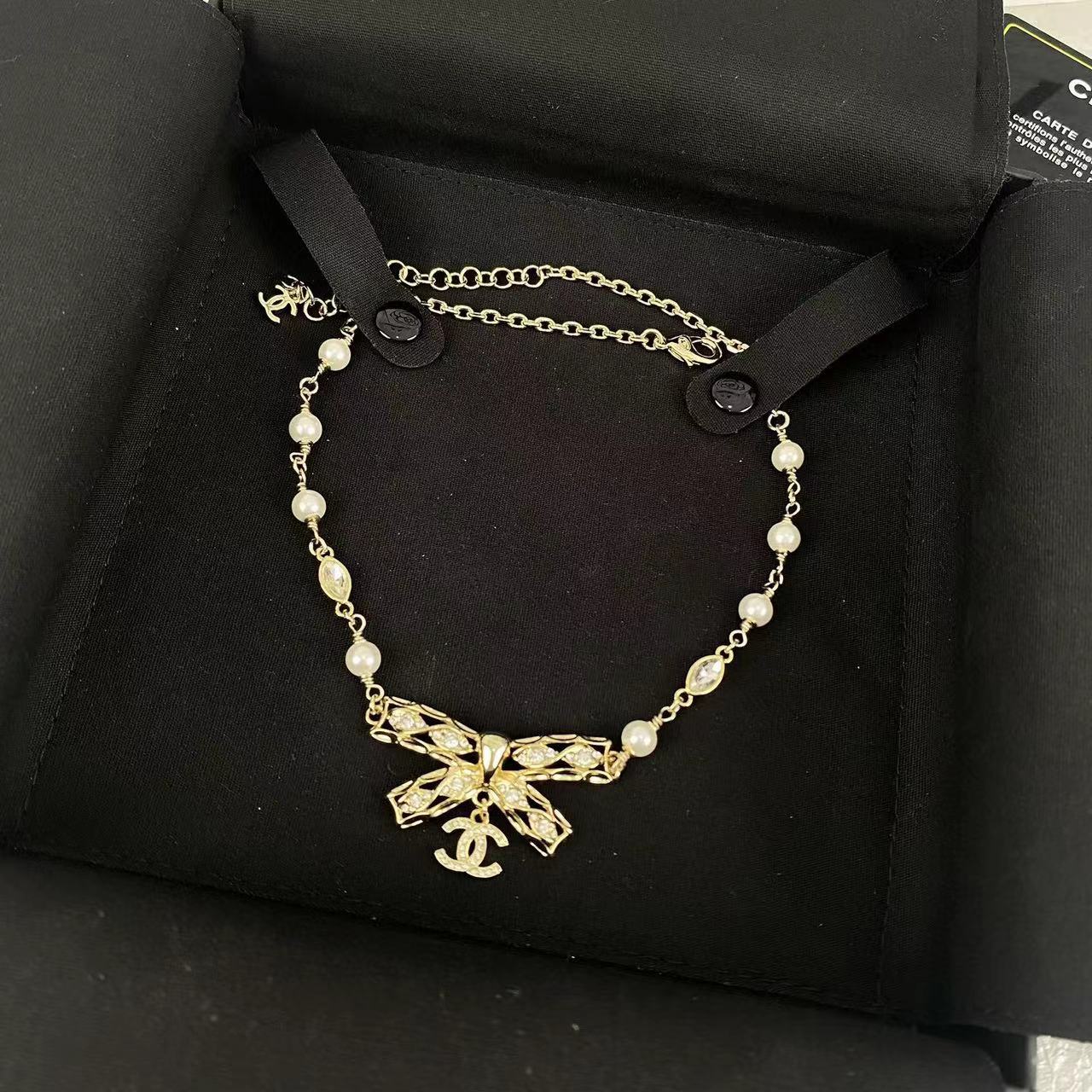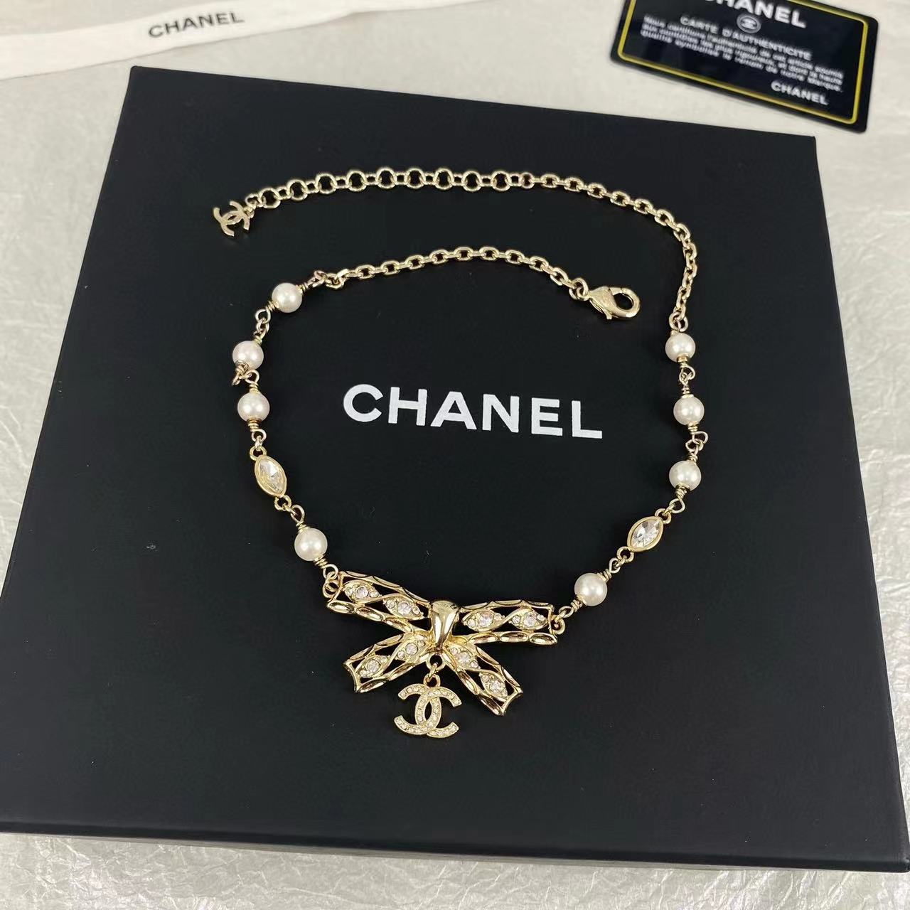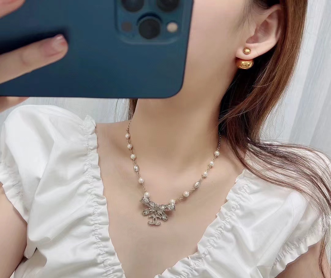CHANE1 ボウ ダイヤモンド ダブル C ネックレス【50%割引+送料無料】
