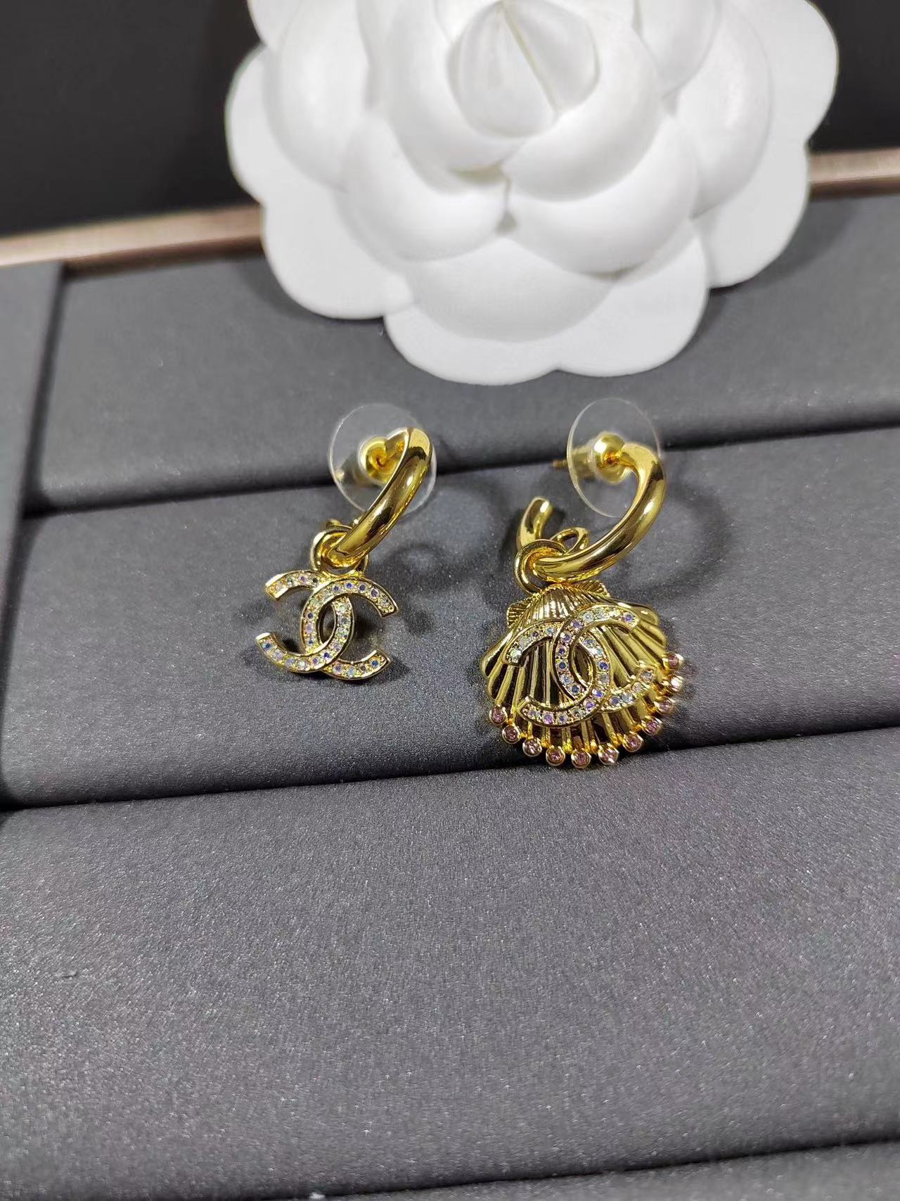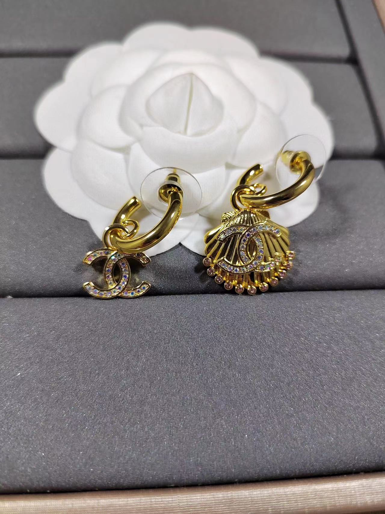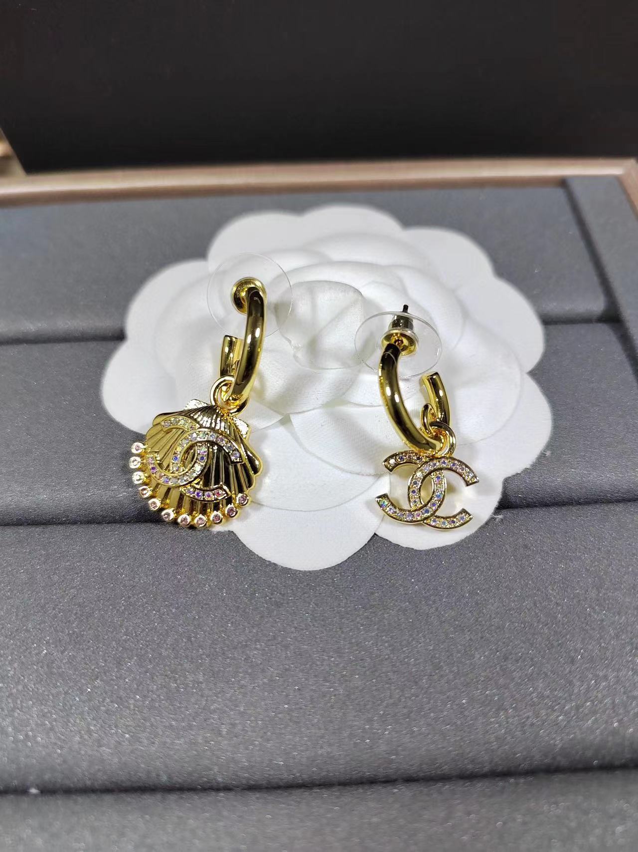 【CHANE1】ダブル C シェル アシンメトリー ピアス【50%割引+送料無料】
