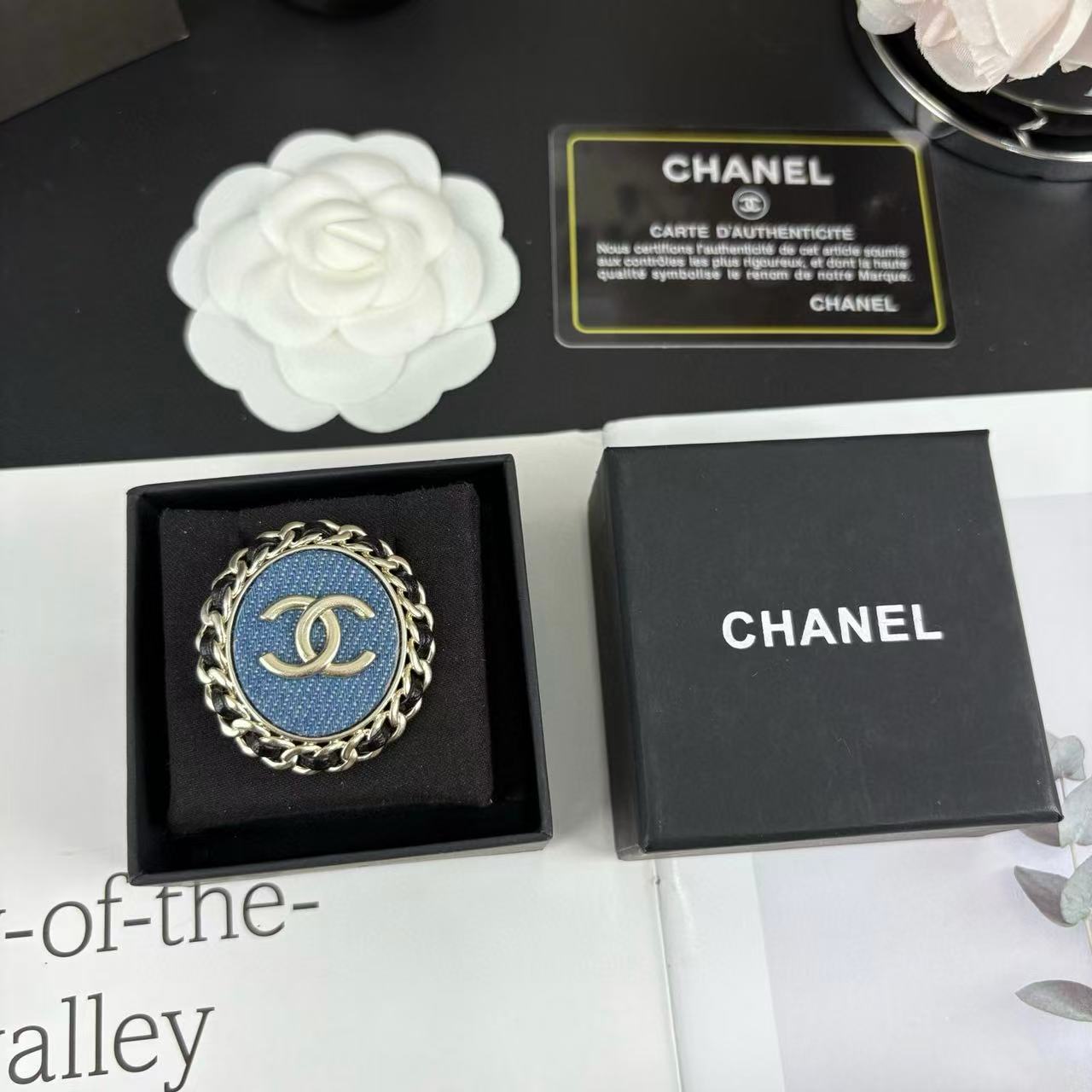 CHANE1 ダブルC デニムレザーブローチ