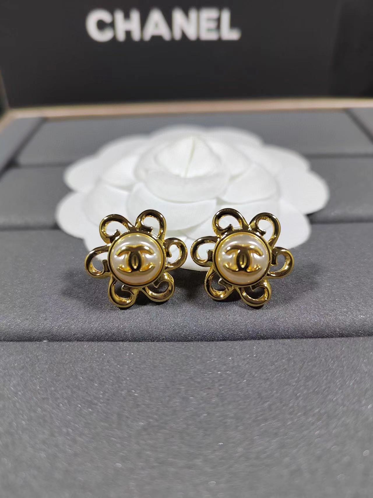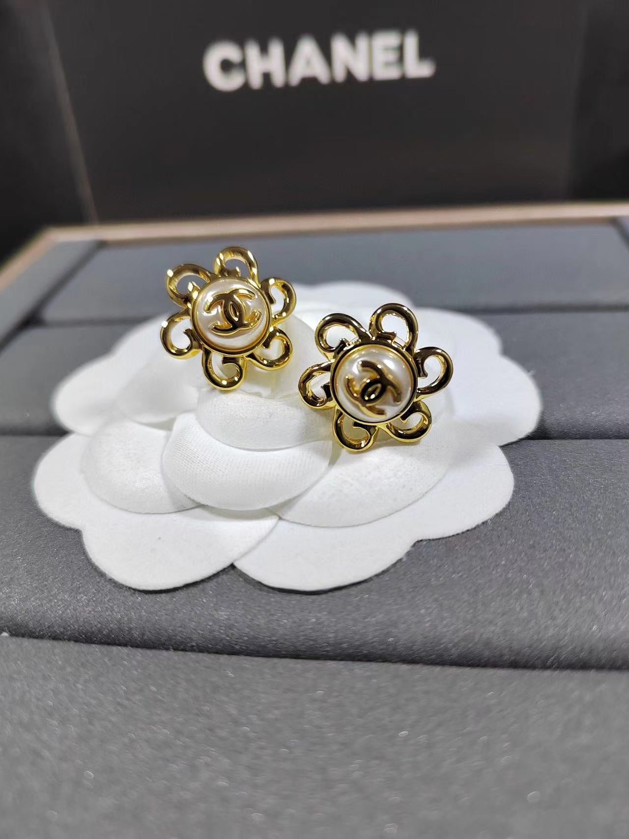 【CHANE1】ダブル C サンフラワー スタッド ピアス【50%割引+送料無料】