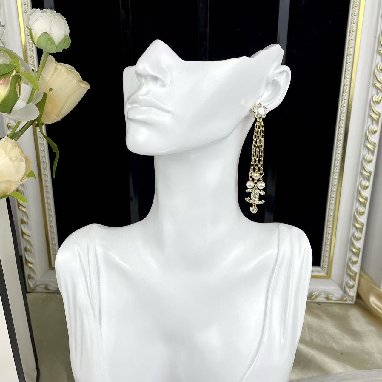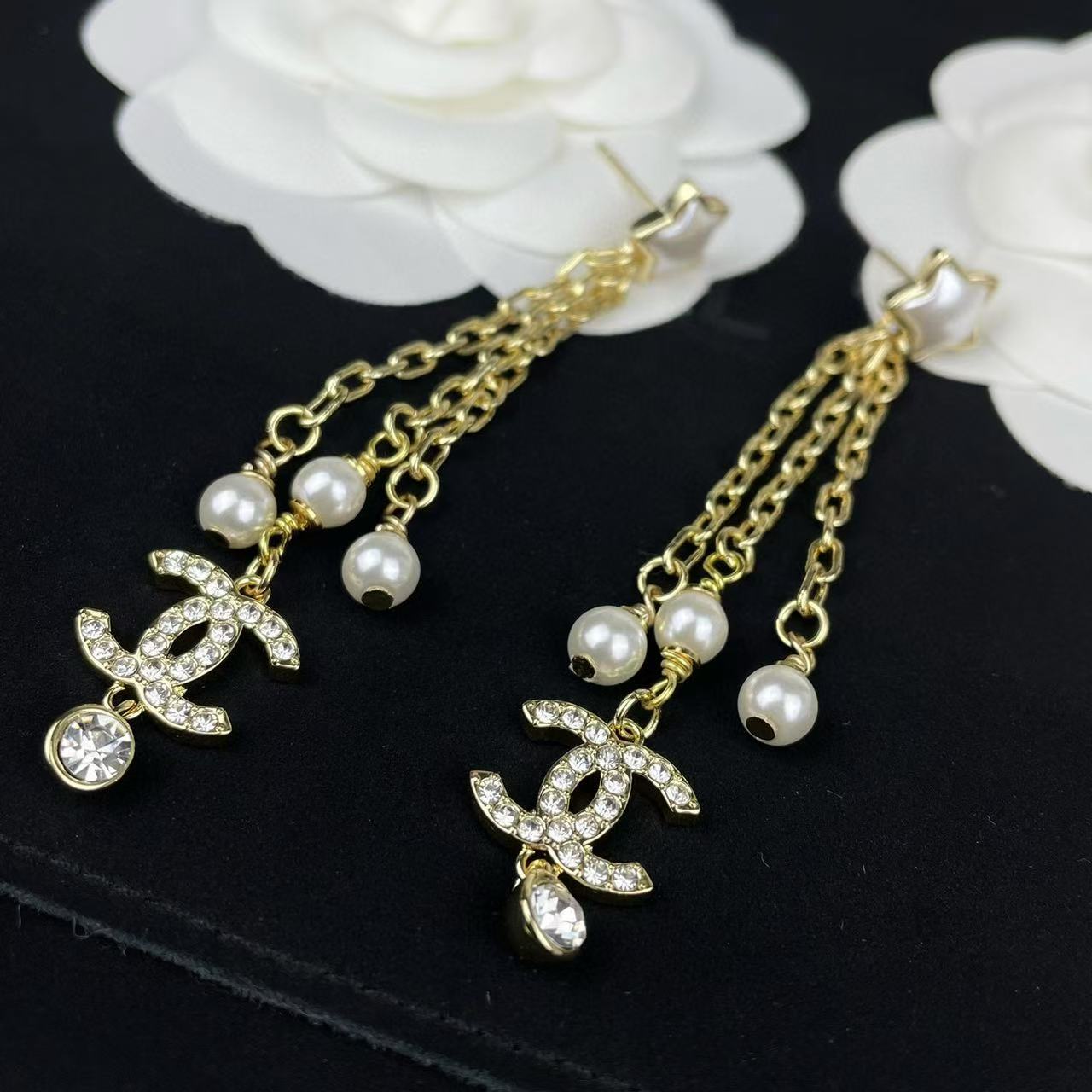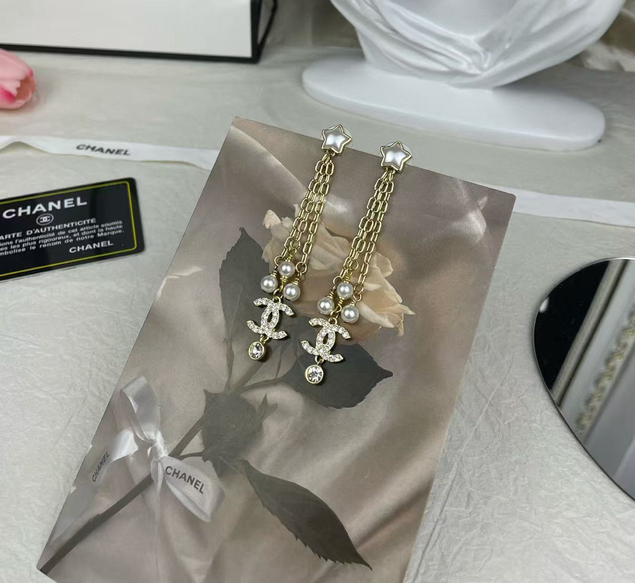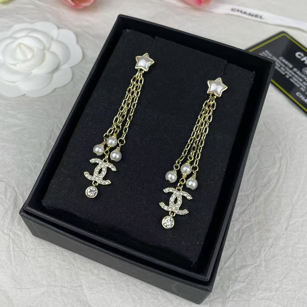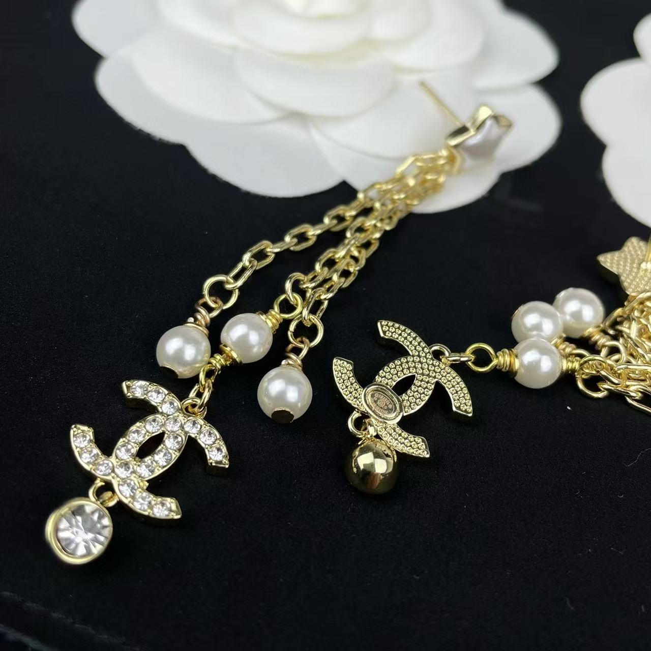CHANE1 ダブルC 五芒星パールイヤリング