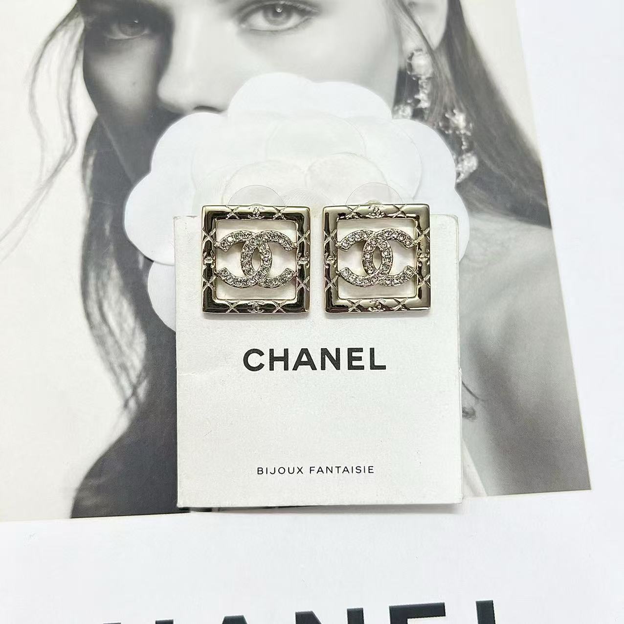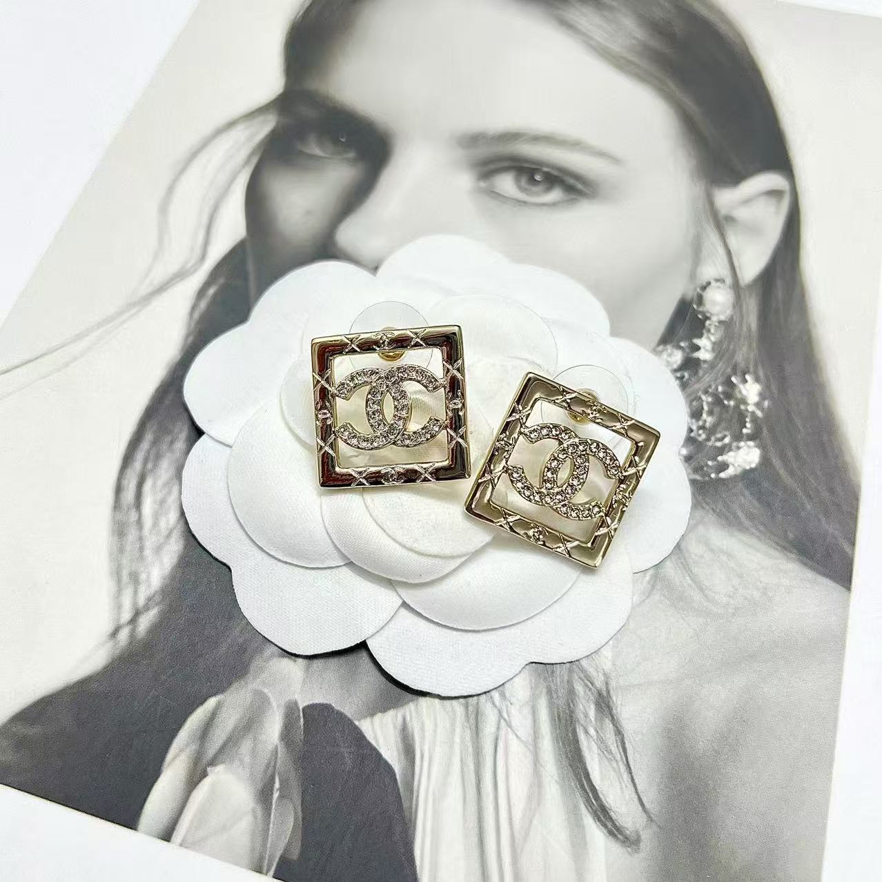 CHANE1 スクエアダブルCイヤリング