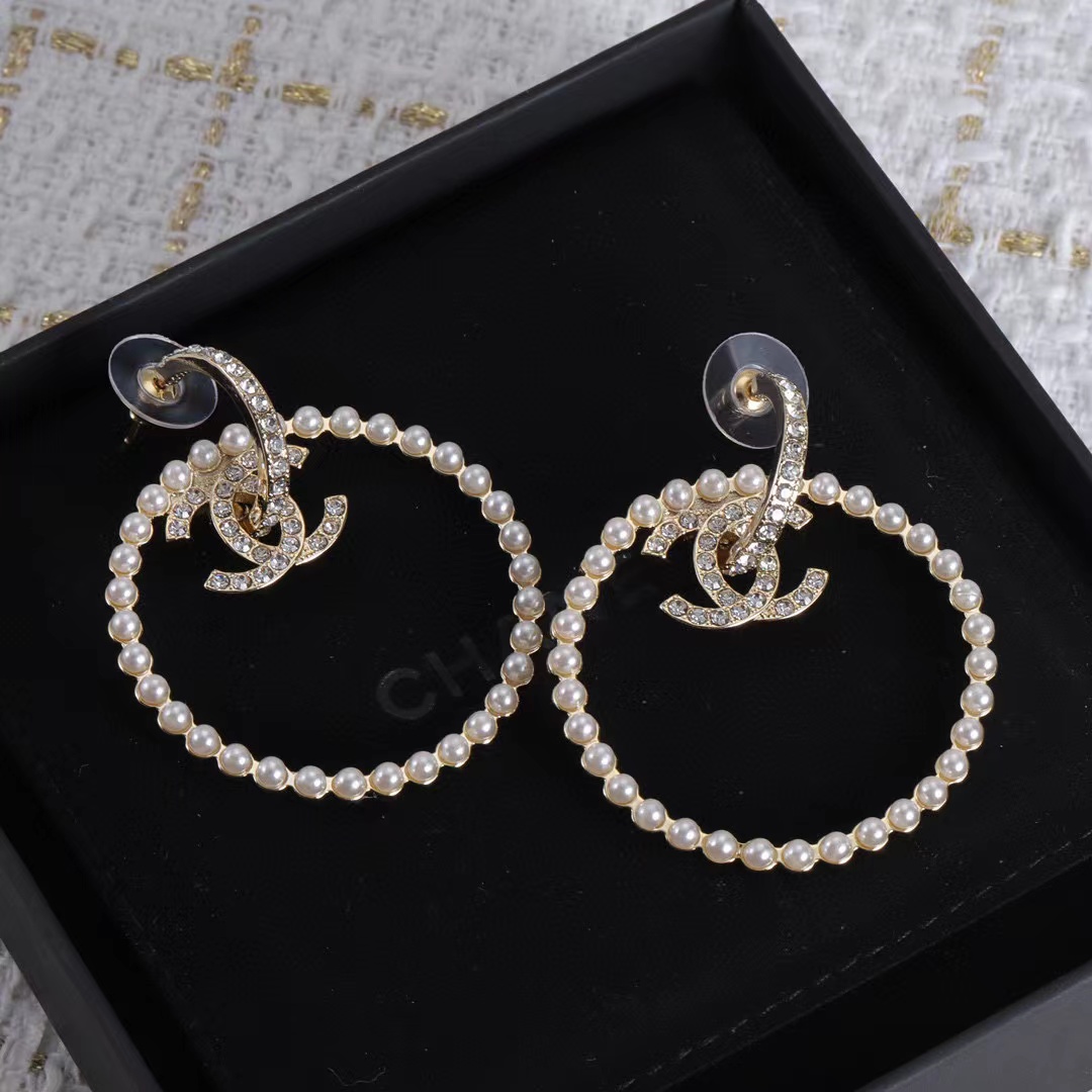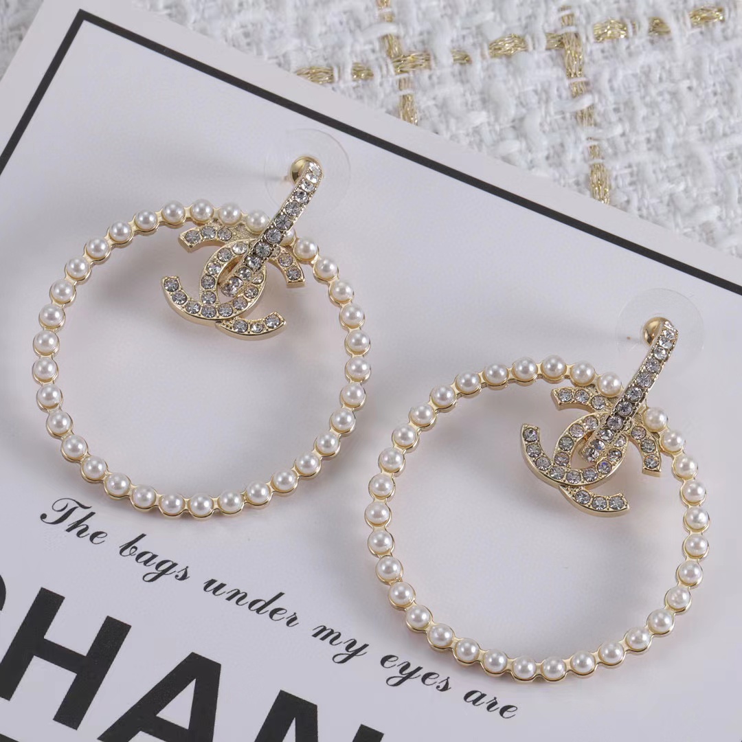 CHANE1 ダイヤモンド サークル パール スタッド ピアス【50%割引+送料無料】