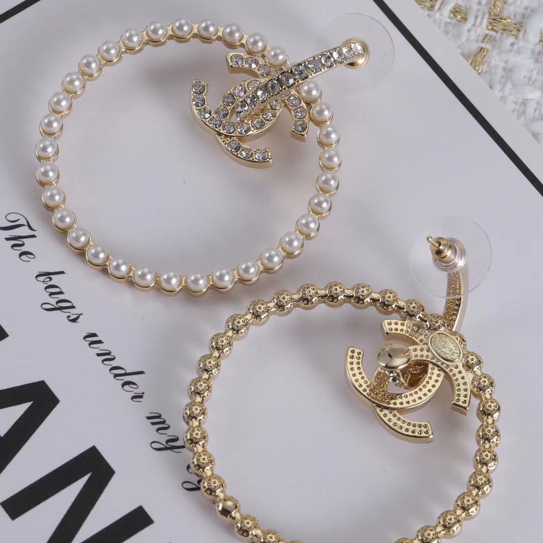 CHANE1 ダイヤモンド サークル パール スタッド ピアス