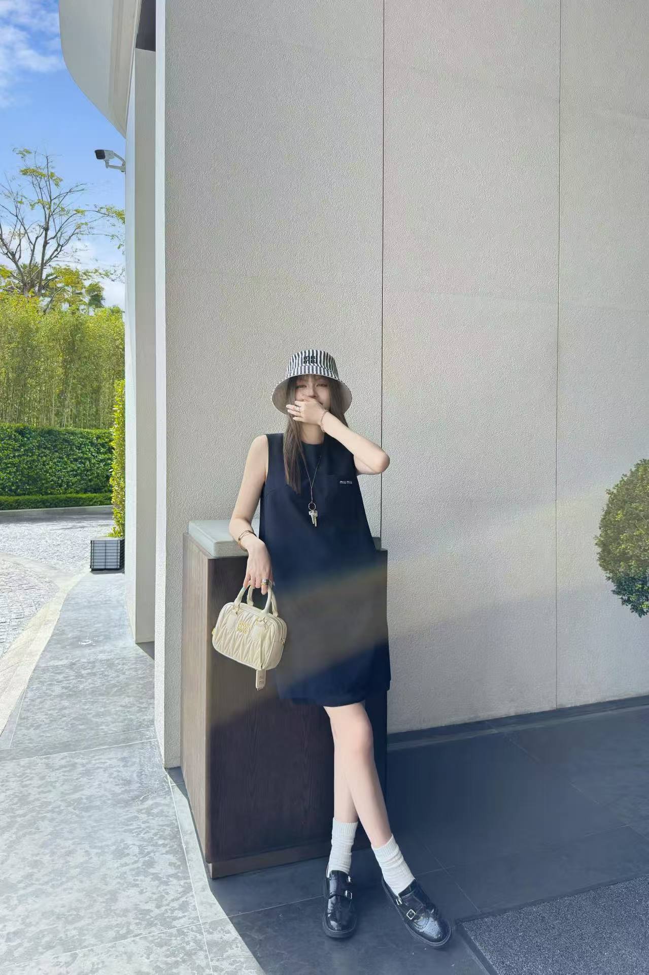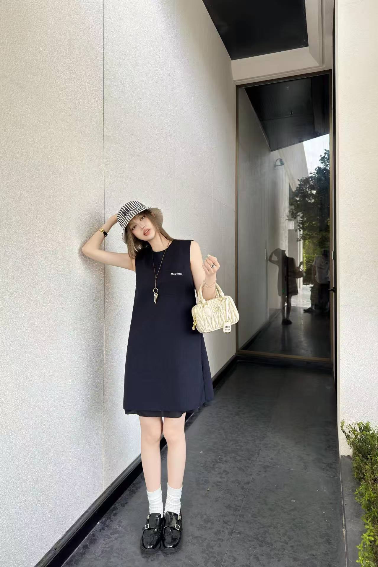 M1UM1U シンプルな文字入りノースリーブドレス【50%割引+送料無料】